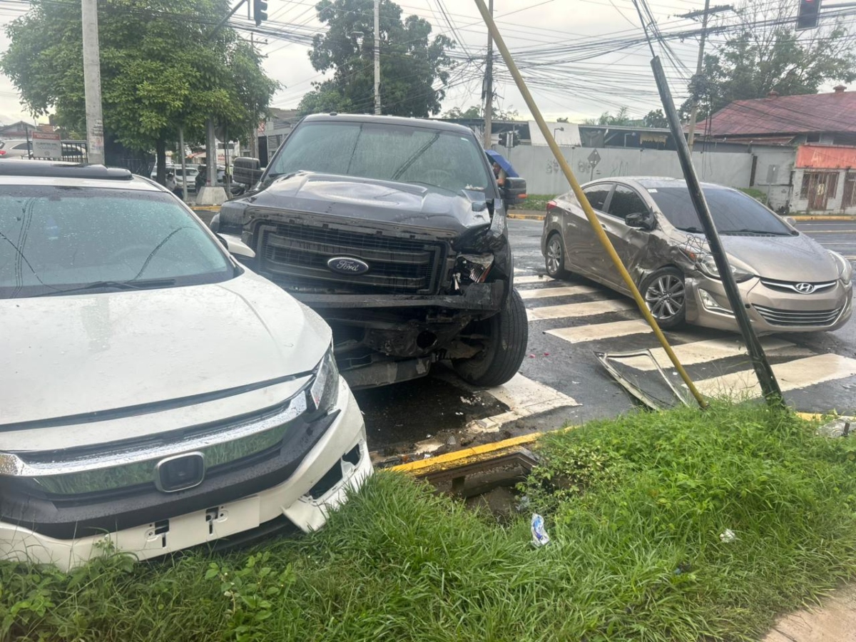 San Pedro Sula, Honduras. La tarde de este viernes, un fuerte accidente vial dejó severos daños materiales en la intersección de la novena avenida y primera calle, entre los barrios Guamilito y El Benque.