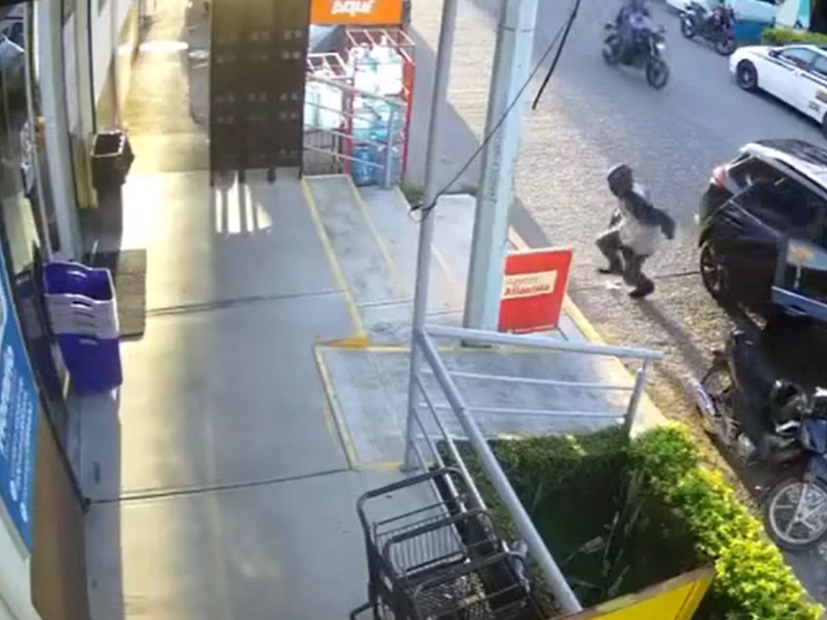 El hecho criminal se extendió por algunos minutos, según deja en evidencia el video. Sin embargo, de un momento a otro se dio el cruce de disparos desde la parte externa del supermercado.
