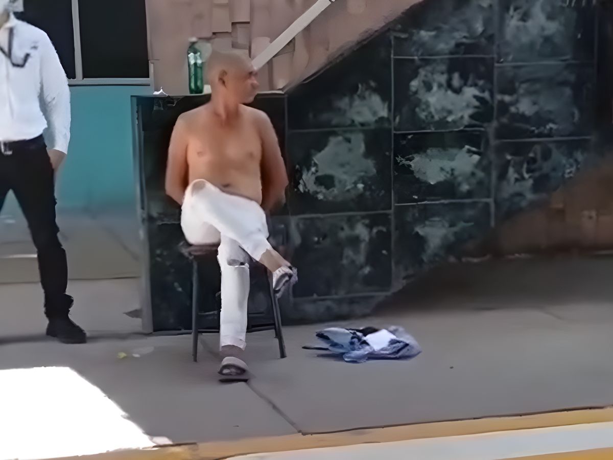 En redes sociales se difundió un video en el que se observa al capturado sentado en una silla sin camisa, en sandalias y con las pertenencias que supuestamente hurtó a un lado.