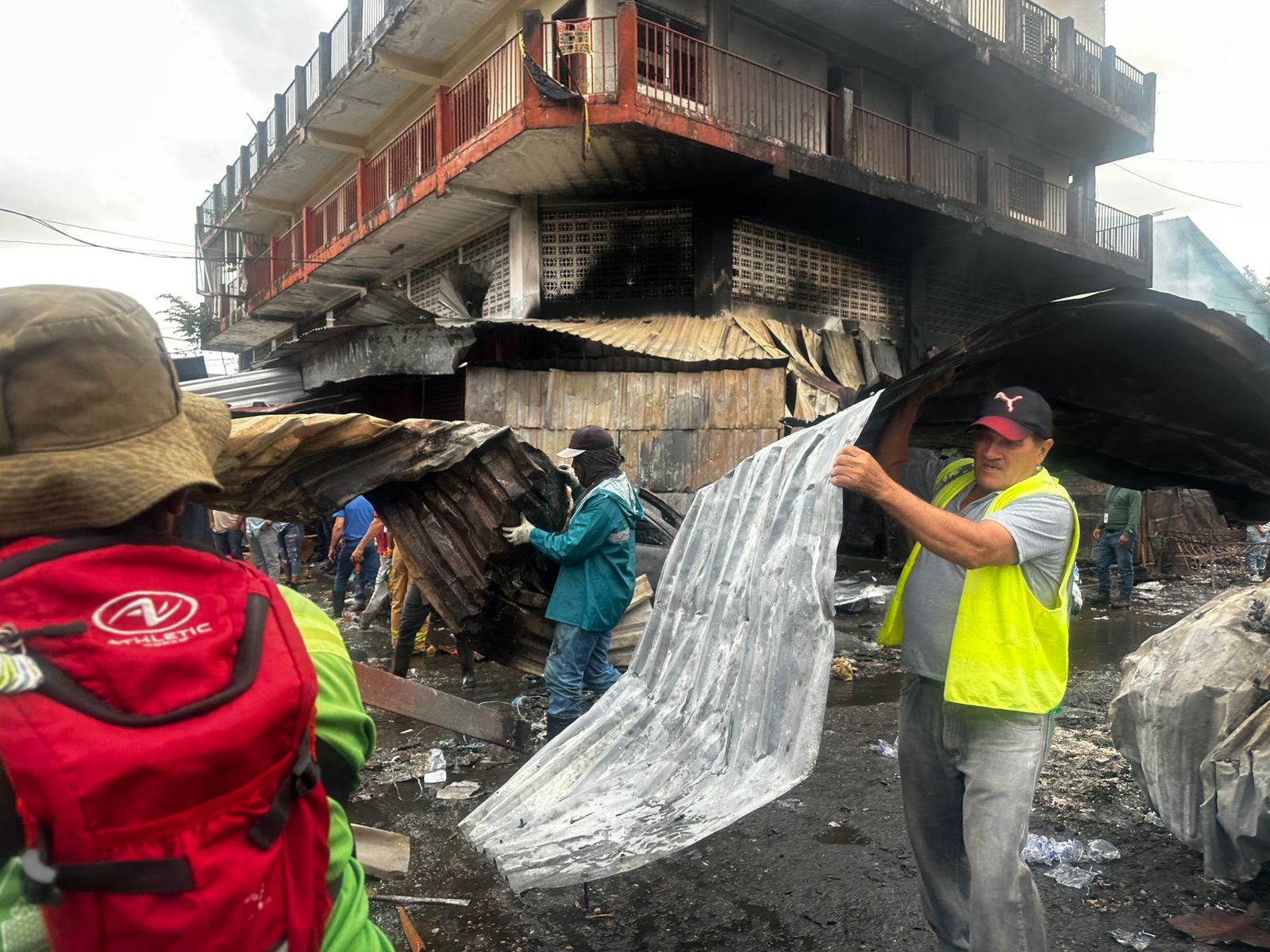 De manera preliminar, se informa que al menos 100 puestos comerciales en el mercado fueron destruidos, situación que deja sin patrimonio a los locatarios que durante años han laborado en la zona. Otros quedaron con daños parciales.